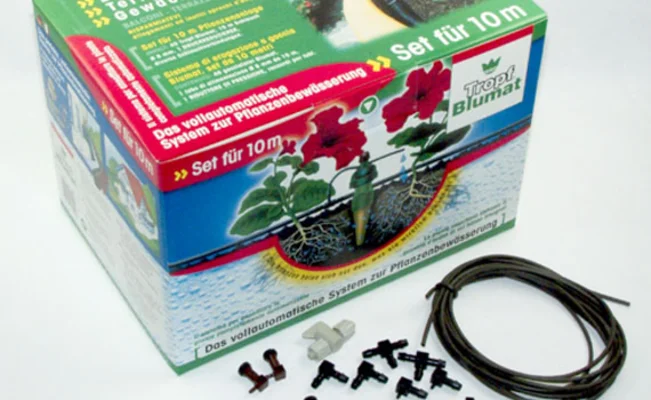 نازل آبرسانی بلومت قابل استفاده در تراس،باغچه،گلخانه،فضای سبز و در بسته بندی 12عددی بهمراه 7متر لوله و اتصالات لازم
